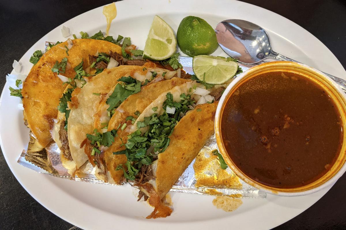 Tender beef slow-cooked in rich spices, served with melted cheese in corn tortillas. Comes with traditional consommé for dipping.