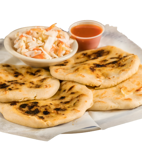 Revueltas (cheese, beans, and chicharrón), bean and cheese, or our classic cheese pupusas. Each pupusa is handmade to order and served with traditional curtido (slaw) and tomato salsa.